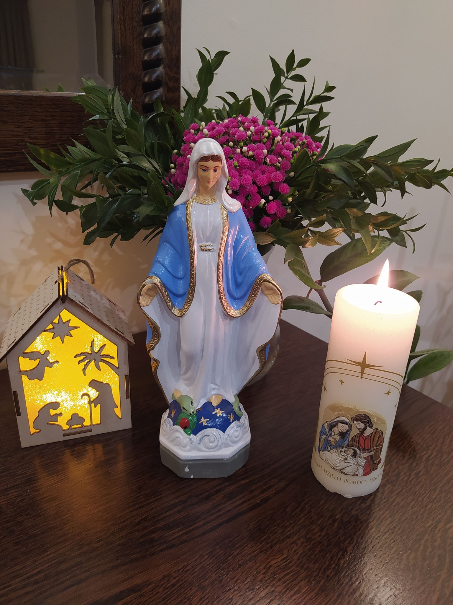 Jak co roku 2 figurki Matki Bożej podczas rorat wędrują do domów dzieci na wspólną rodzinną modlitwę.
