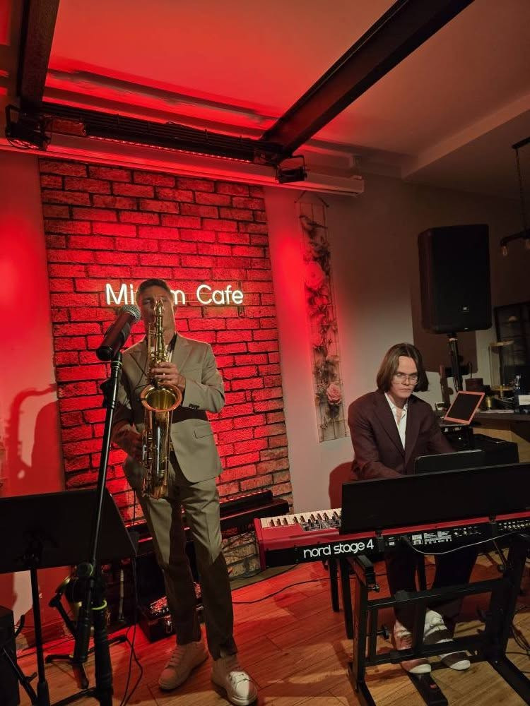 W niedzielne popołudnie mieliśmy okazję uczestniczyć we wspaniałym wydarzeniu kulturalnym w naszej Miriam Cafe, w której gościliśmy Olaf Gąsiorek, który jest świetnym saksofonistą, co potwierdził rewelacyjnym koncertem dla zgromadzonych gości! Towarzyszył mu Leon Jakubek na pianinie. Był to dobrze spędzony czas słuchania pięknej muzyki w wykonaniu utalentowanych muzyków. Przy dobrej kawie i bezie Pavlova, od Ryszard Szóstak czyli Cukiernia Ricardo.