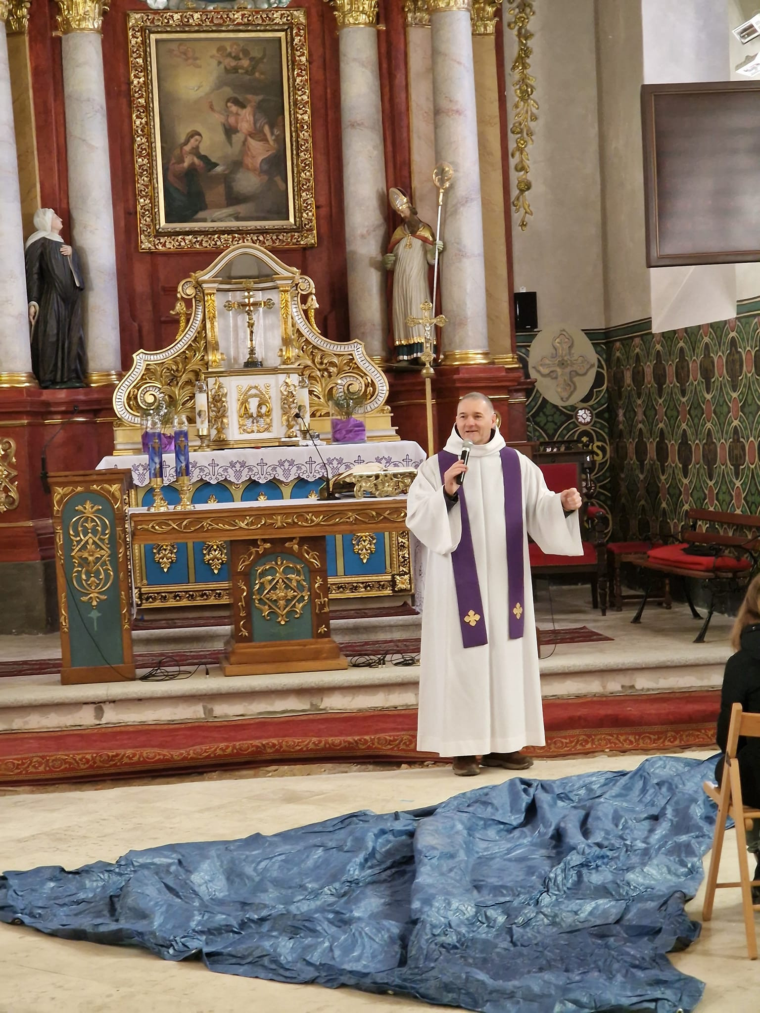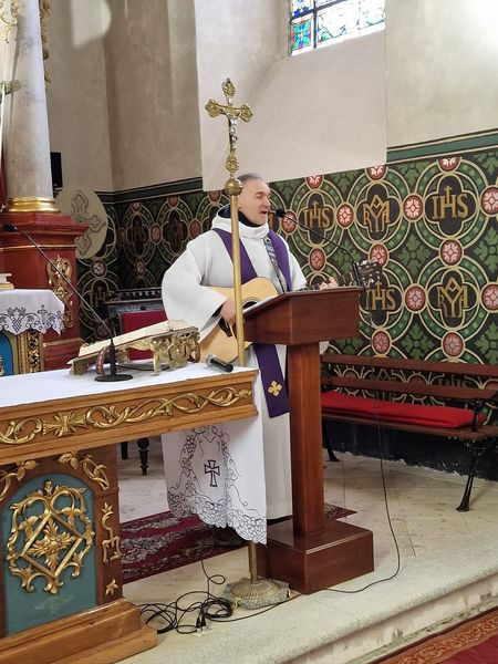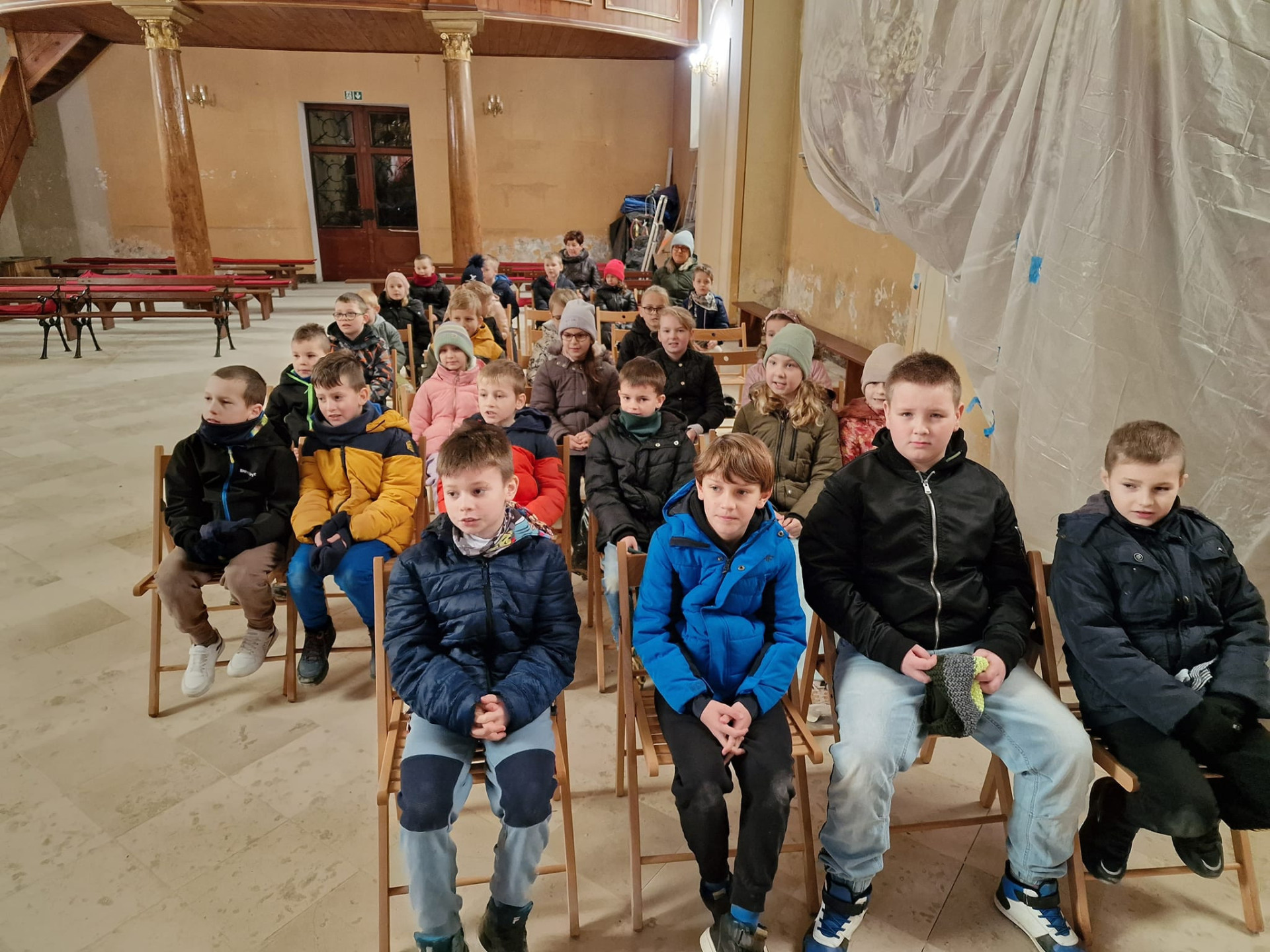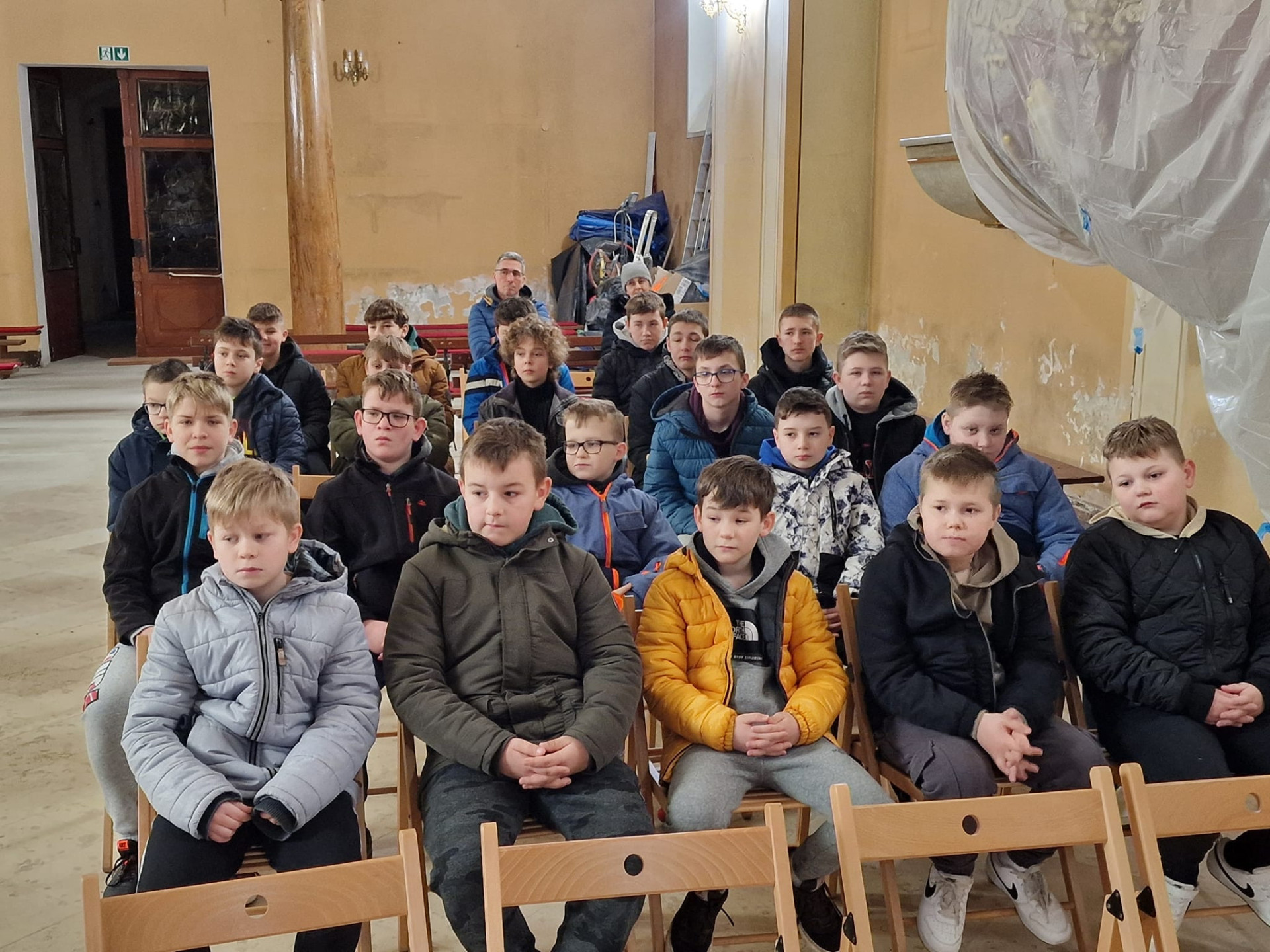 Rekolekcje parafialne, ale też i szkolne dla uczniów SP w Lutogniewie. Głosi ks. Piotr Woźniak.