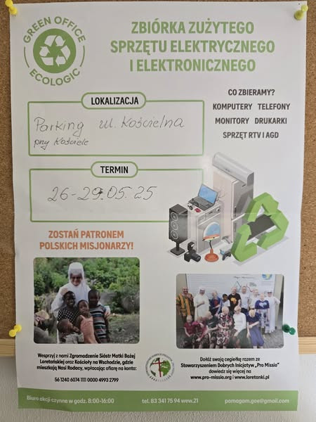 Bardzo dziękuję za przyniesione sprzęty na zbiórkę sprzętu elektrycznego i elektronicznego, jako pomoc Misjom.